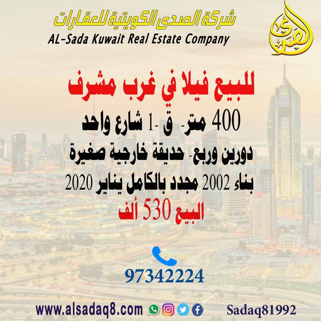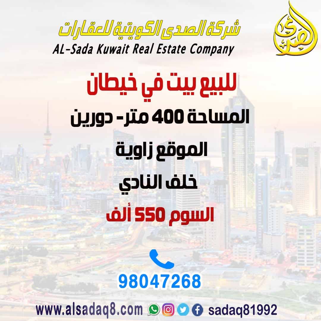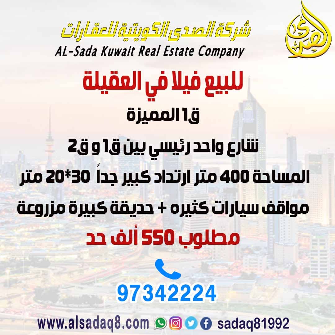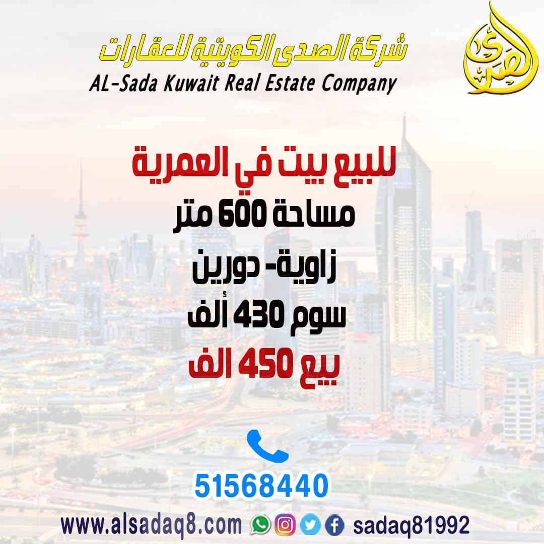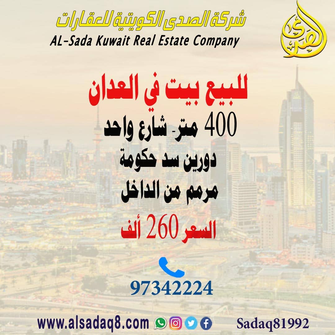 للبيع بيت شارع واحد بمنطقة الاحمدى