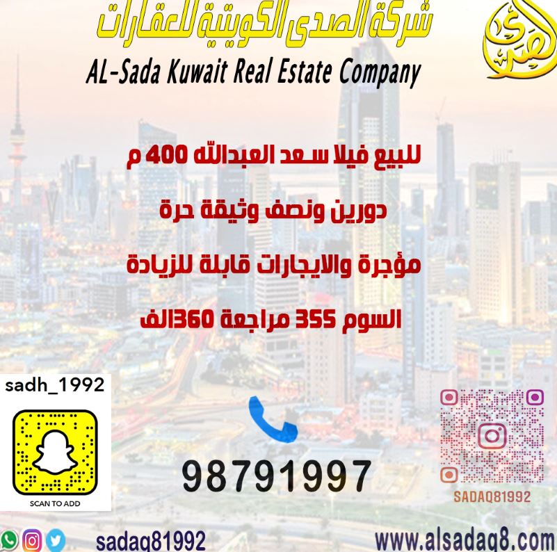 للبيع بيت صباح السالم شارع وسكة خلفية عريضه