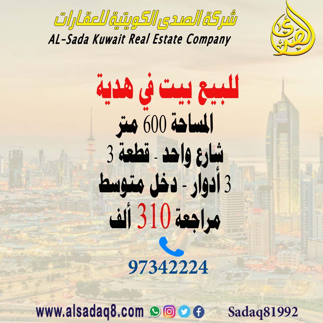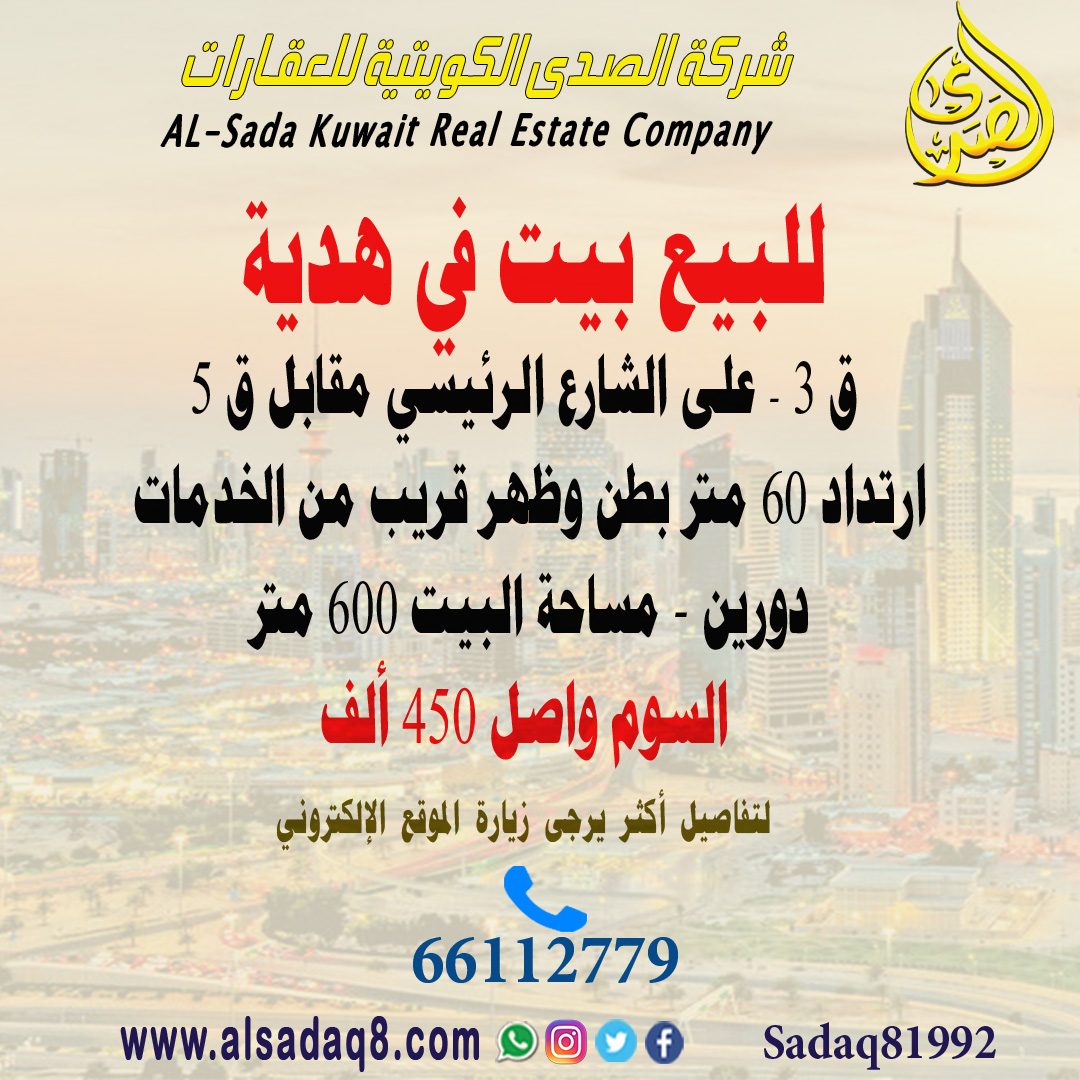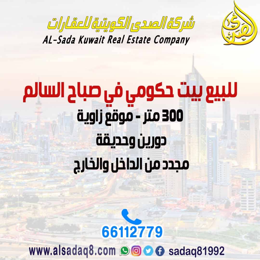 للبيع بيت حكومى صباح الاحمد السكنية موقع راس 3 جهات على وضع الاستلام