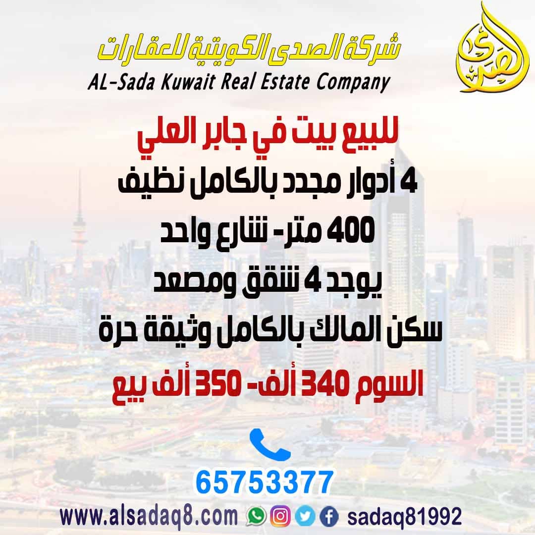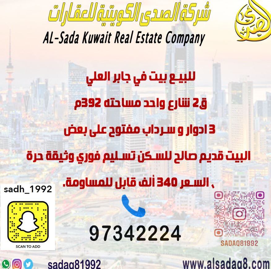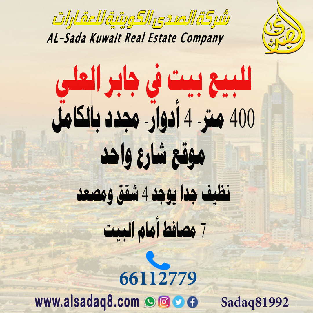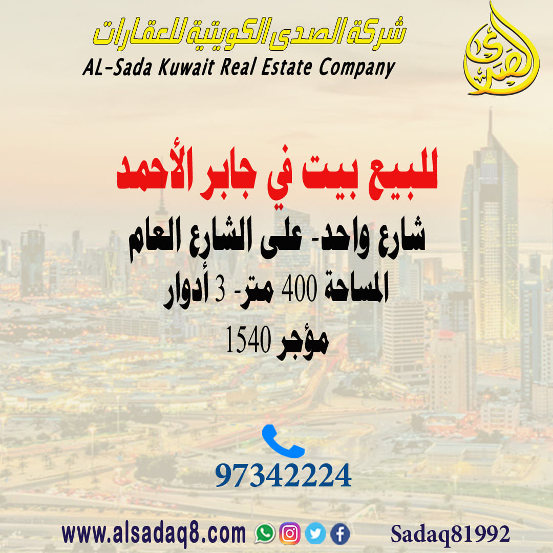 للبيع بيت بالجابريه موقع شارع واحد مبنى 3 ادوار مساحة 500 متر