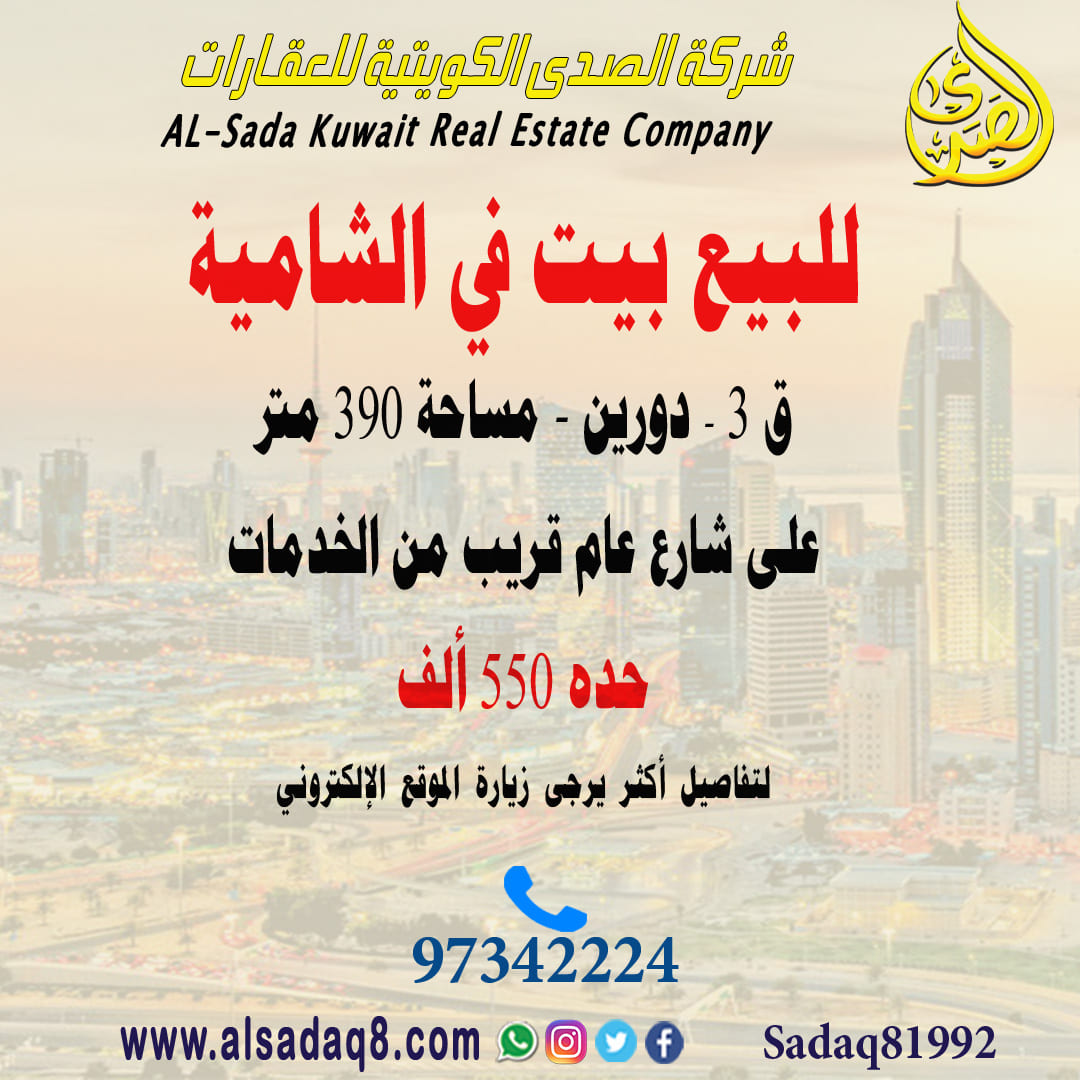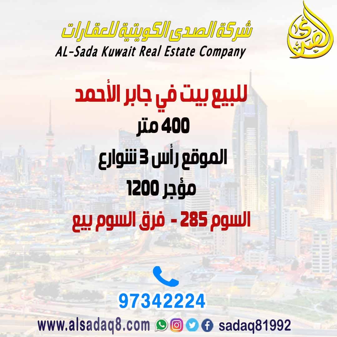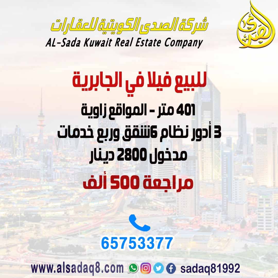 للبيع بيت بالجابريه موقع شارع واحد مبنى 3 ادوار مساحة 500 متر