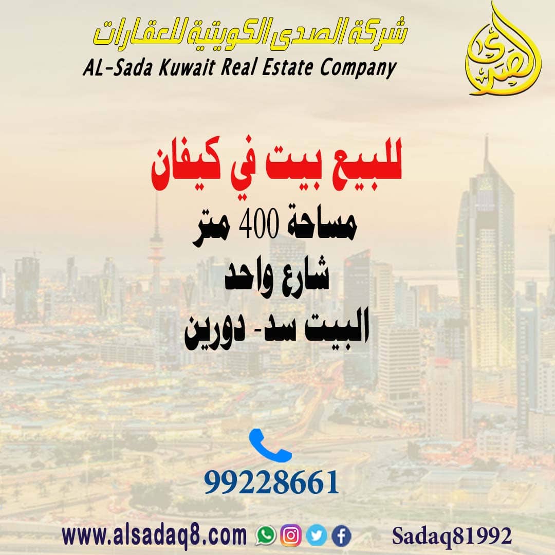 للبيع بيت كيفان مساحة 500 متر موقع شارع واحد