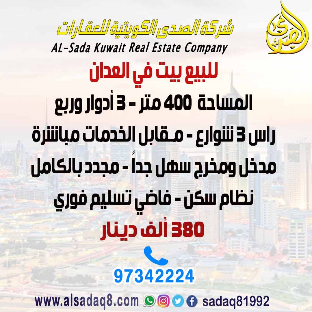 للبيع بيت صباح الناصر 3 ادوار وسرداب