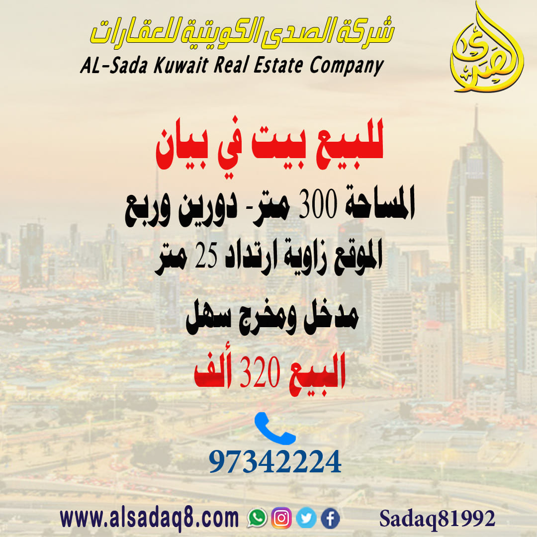 للبيع بيت بيان شارع وسكة خلفية وساحة جانبية