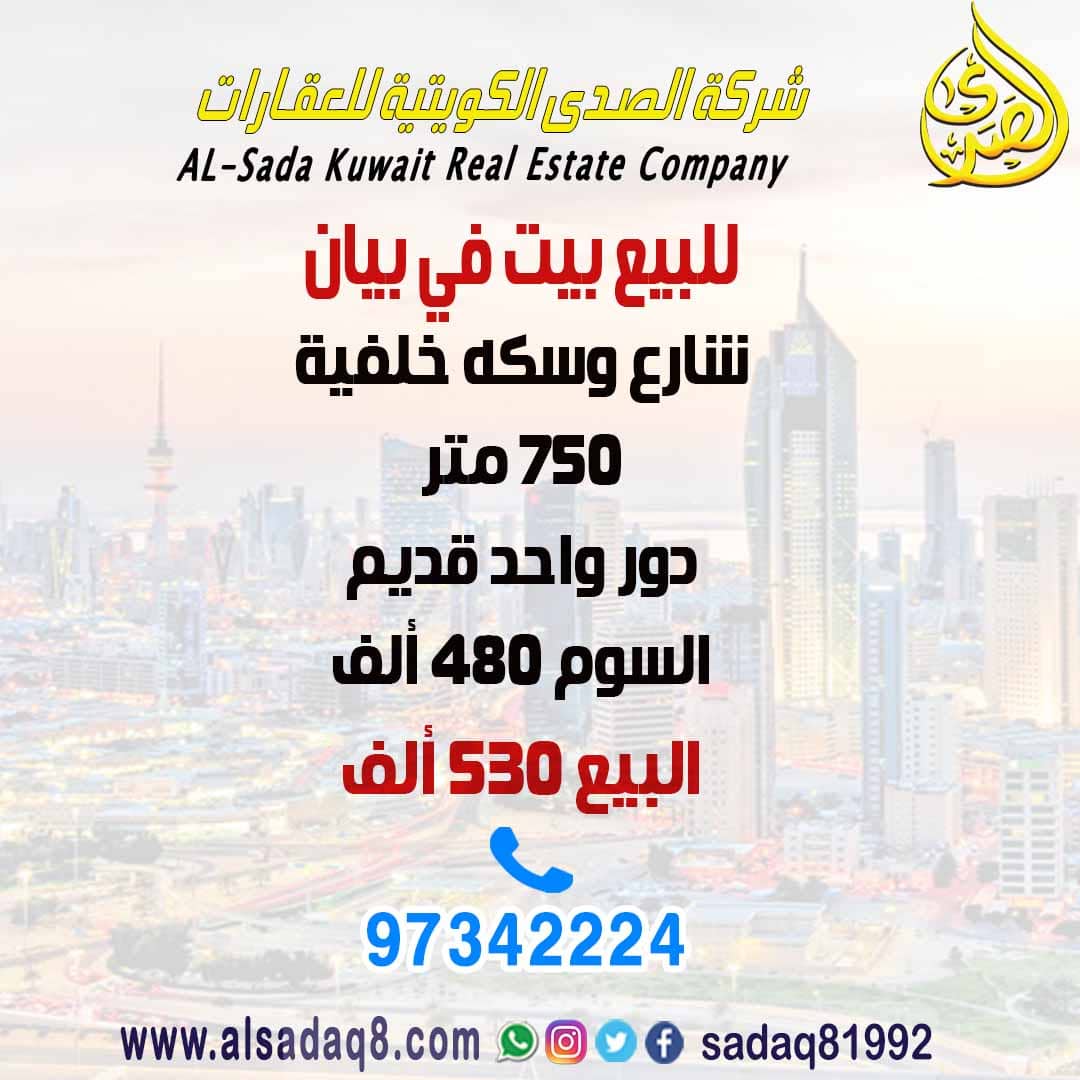 للبيع بيت في بيان 750 متر شارع وسكة خلفية