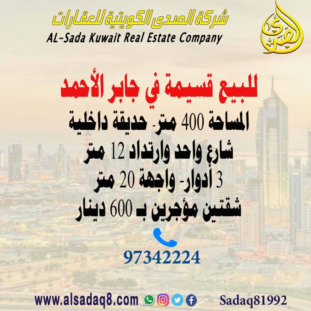 للبيع قسيمه سعد العبدالله شارع واحد 3 ادوار
