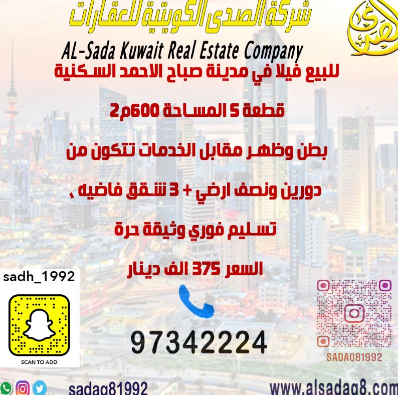 بطن وظهر شارع رئيسي مقابل صباح السالم ثلاث أدوار وسرداب