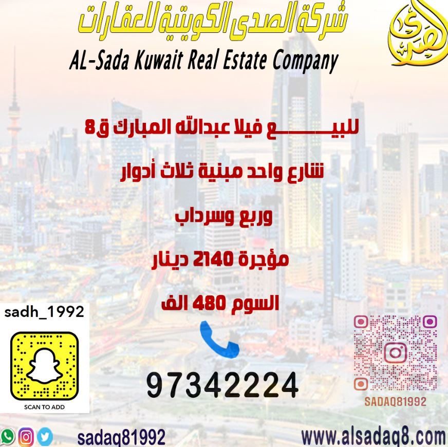 للبيع قسيمه سعد العبد الله موقع 3 شوارع مبنى دورين ونص