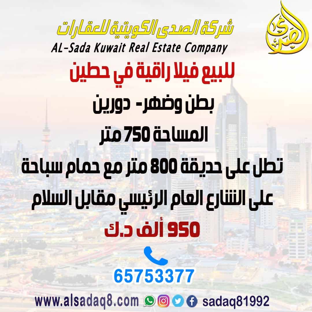 للبيع فيلا حطين قطعه 2 شارع واحد