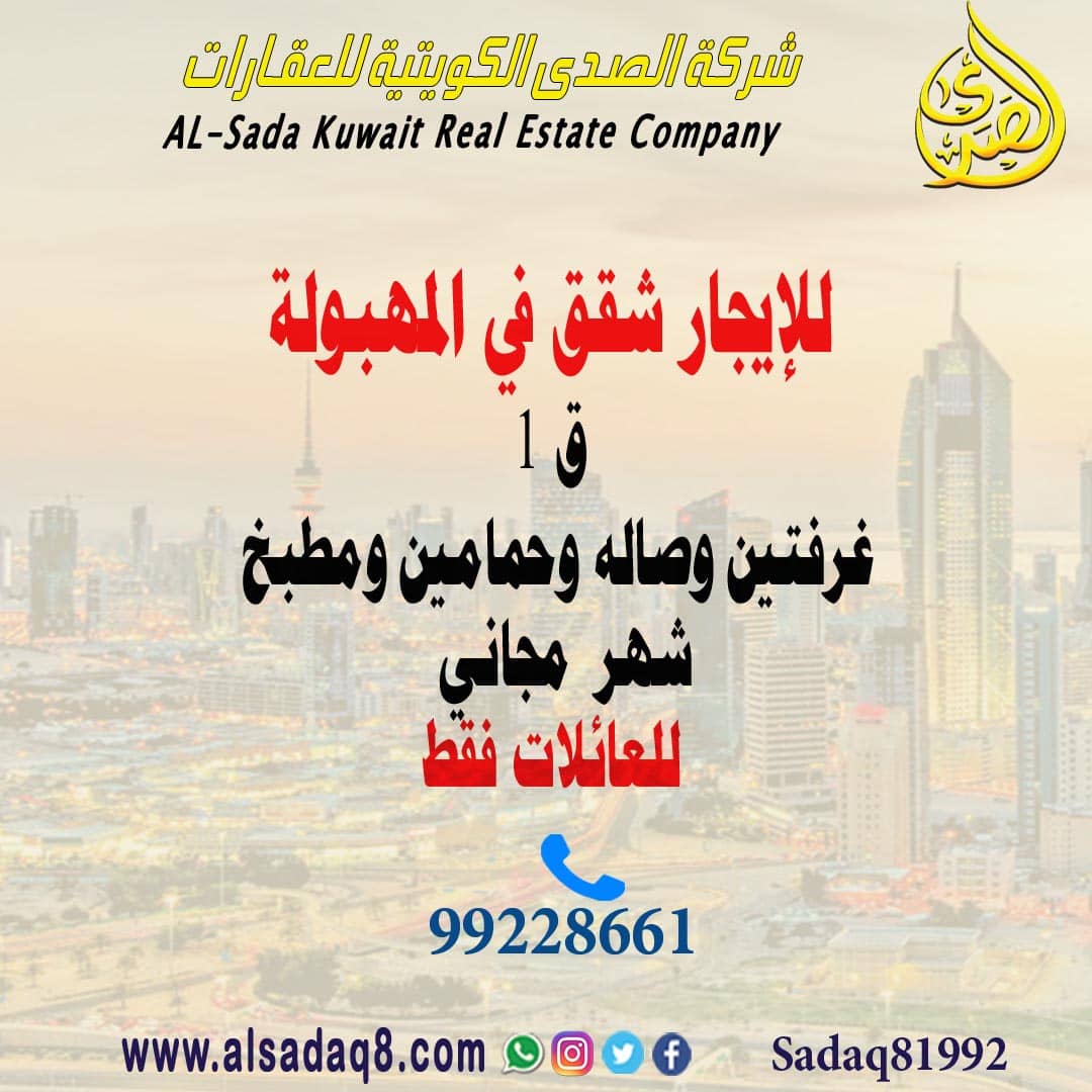 ق1 غرفتين وصاله وحمامين ومطبخ