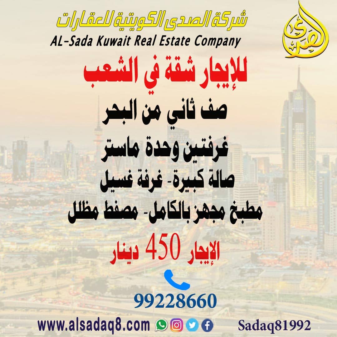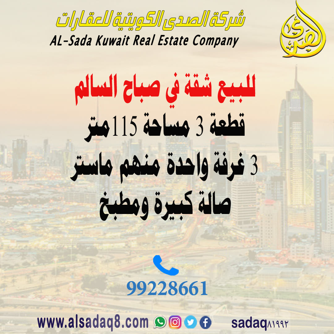 للبيع شقه صباح الاحمد البحرية طريق287 المرحلة الاولى شاليهات المهنى