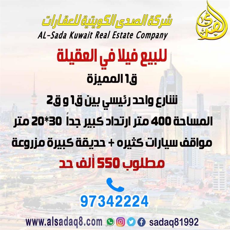 المساحة 400 متر ارتداد كبير جداً 30*20 متر