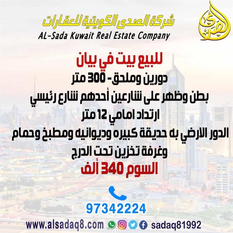 الدور الارضي به حديقة كبيره وديوانيه ومطبخ وحمام وغرفة تخزين تحت الدرج