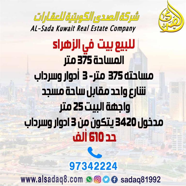 مدخول 3420 يتكون من 3 ادوار وسرداب